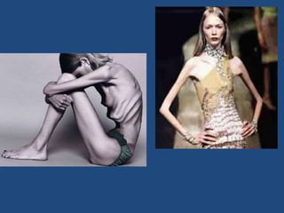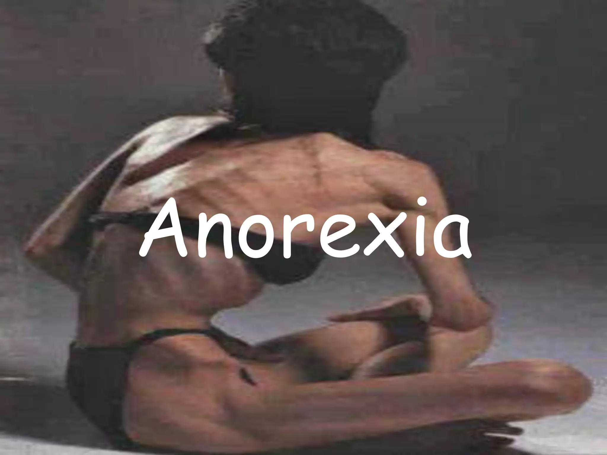 A anorexia é uma doença que afeta principalmente jovens do sexo feminino e modelos, levando à recusa de alimentos e ao desejo de manter a aparência infantil. Ela pode ser causada por disfunções cerebrais e levar a complicações de saúde graves como paradas cardíacas. As pessoas com anorexia tendem a se verem como gordas, mesmo quando extremamente magras.