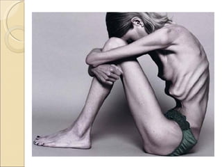 O documento aborda a anorexia e a bulimia como disfunções alimentares, destacando suas características, causas e complicações. Também discute a obesidade como uma condição de saúde associada ao preconceito social. Depoimentos de indivíduos afetados revelam o impacto emocional e social dessas condições.