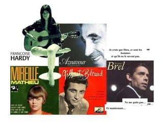 Je crois queDieu, ce sont les hommeset qu'ils ne le savent pas.Ne me quite pas…Et maintenant…