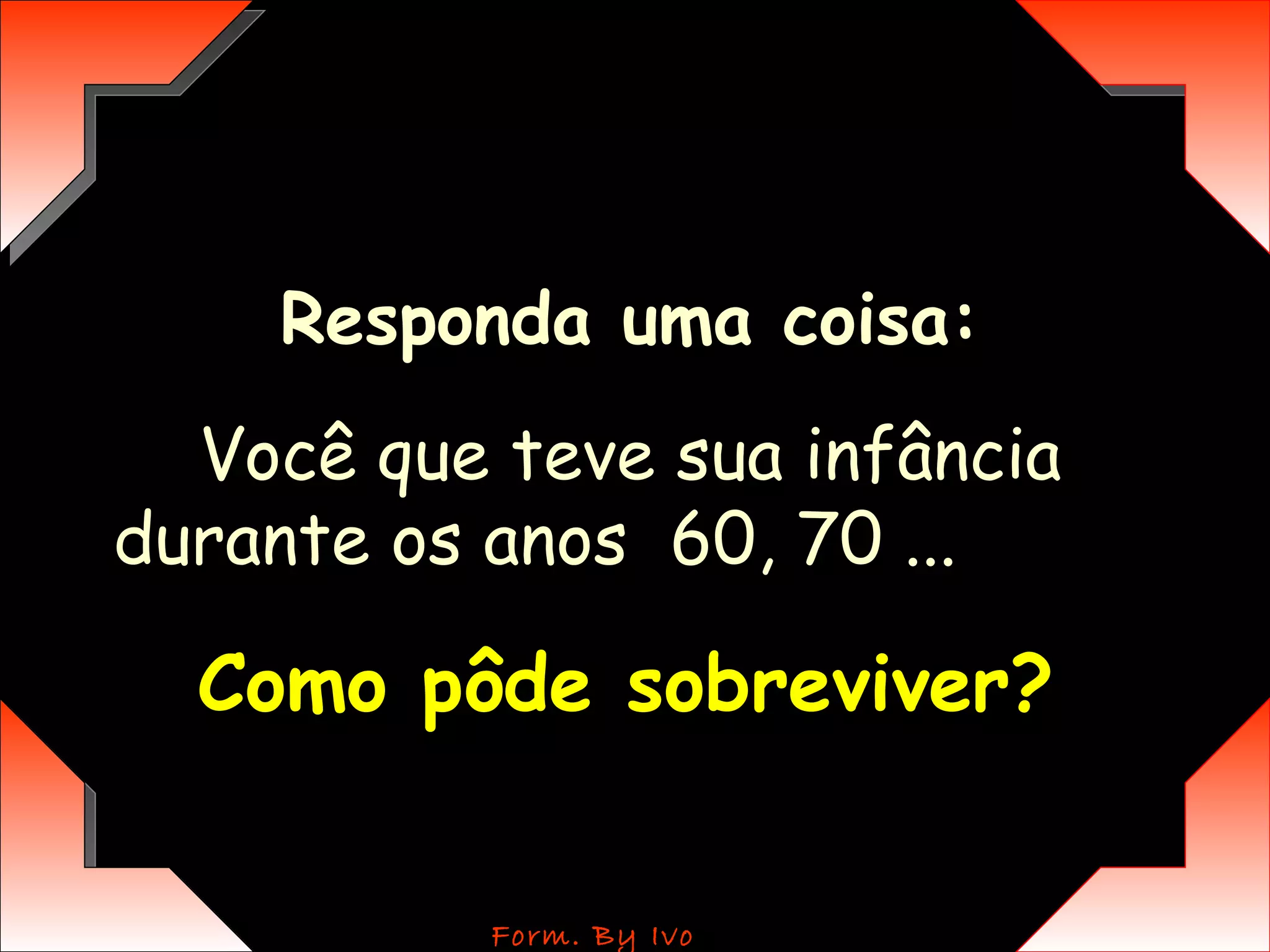 Responda uma coisa:Você que teve sua infância durante os anos 60, 70 ... Como pôde sobreviver?