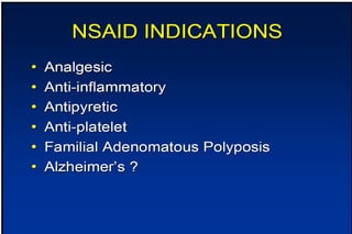 O documento descreve os principais aspectos dos anti-inflamatórios não esteróides (AINES), resumindo em: