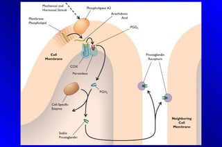 1) Os AINES atuam inibindo as enzimas ciclooxigenases COX-1 e COX-2, reduzindo a produção de prostaglandinas e apresentando efeitos analgésicos, antipiréticos e anti-inflamatórios.