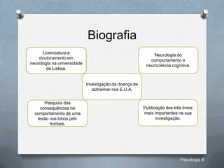 António Damásio é um neurologista português nascido em 1944 que investigou os efeitos de lesões cerebrais nos lobos pré-frontais no comportamento humano. Suas descobertas levaram-no a concluir que as emoções desempenham um papel fundamental na tomada de decisões ao fornecer "marcadores somáticos".