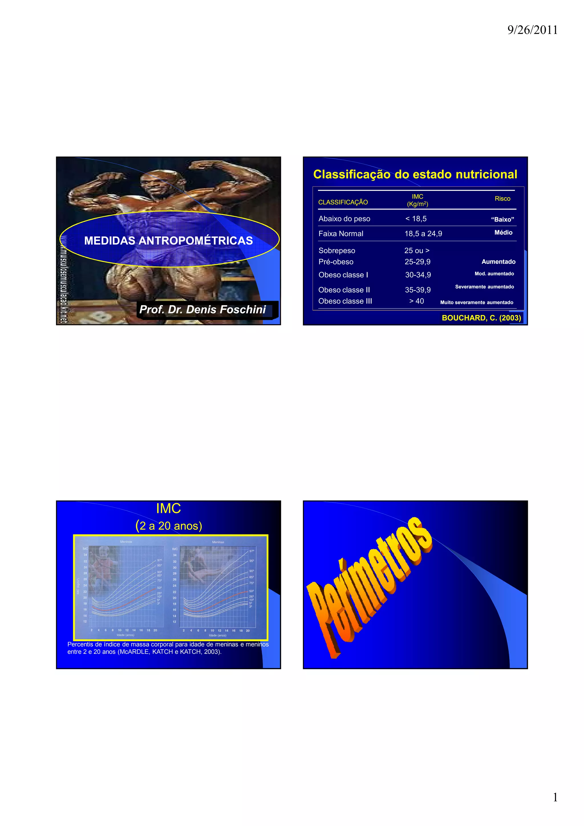 O documento fornece informações sobre a classificação do estado nutricional com base no IMC, definindo faixas de peso consideradas abaixo do peso, peso normal, sobrepeso, pré-obeso, obeso classe I, II e III. Também resume medidas antropométricas como circunferências do tórax, cintura, abdômen, quadril, coxa e pernas e relações entre elas como indicadores de risco para doenças. Por fim, explica cálculos do tecido adiposo visceral e total.