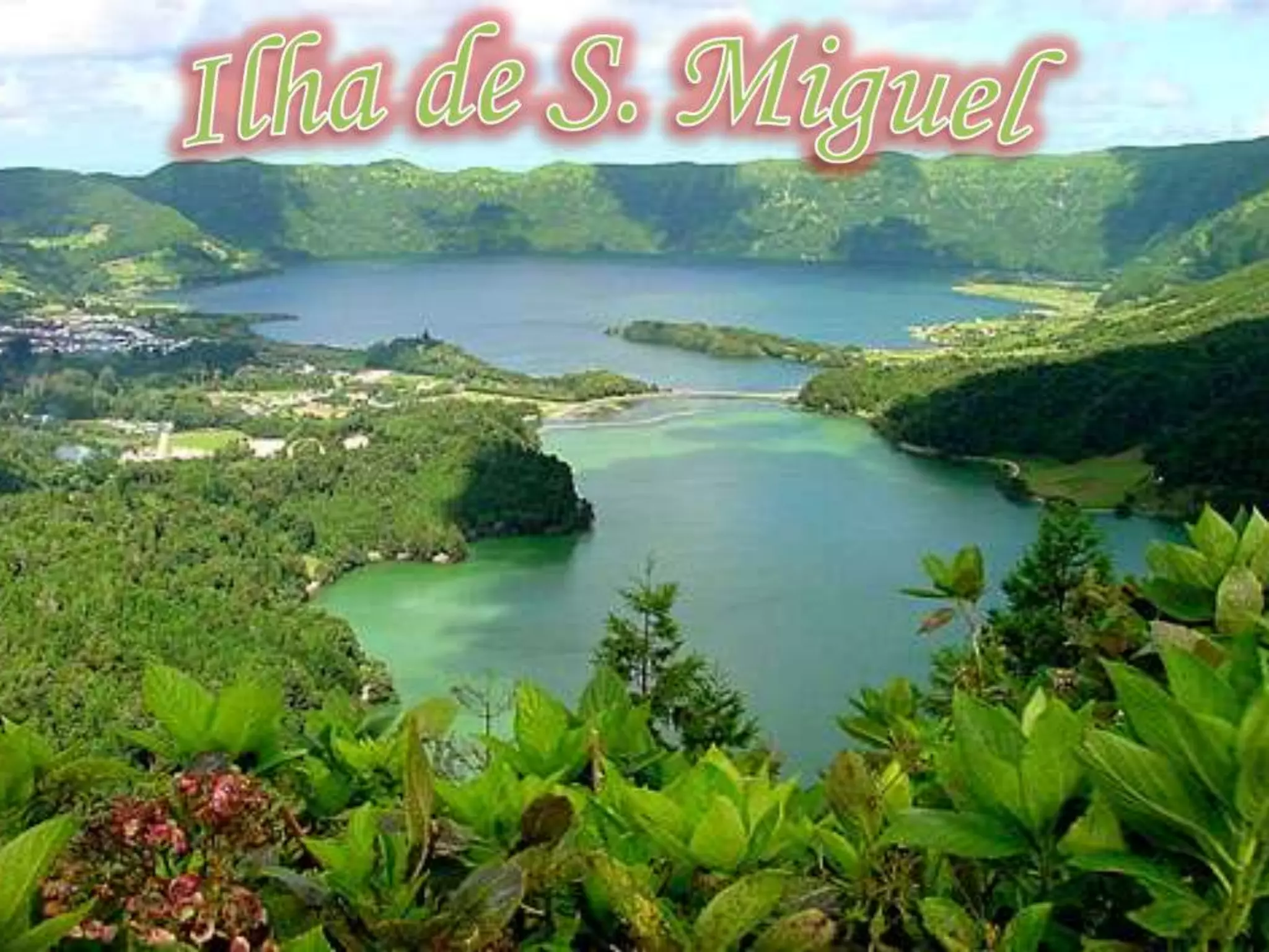 O documento descreve a ilha de São Miguel nos Açores como um destino de férias, localizando-a no arquipélago dos Açores no Atlântico Nordeste. Também apresenta o prato típico "Cozido das Furnas", preparado em caldeiras naturais, e menciona locais a visitar na ilha.