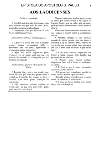 Paulo escreve aos cristãos em Laodicéia para adverti-los sobre falsas pregações e ensinar-lhes a permanecer firmes na verdade do evangelho. Ele os encoraja a manter o amor uns pelos outros e a viver de acordo com os ensinamentos de Cristo, o que lhes trará paz e vida eterna.