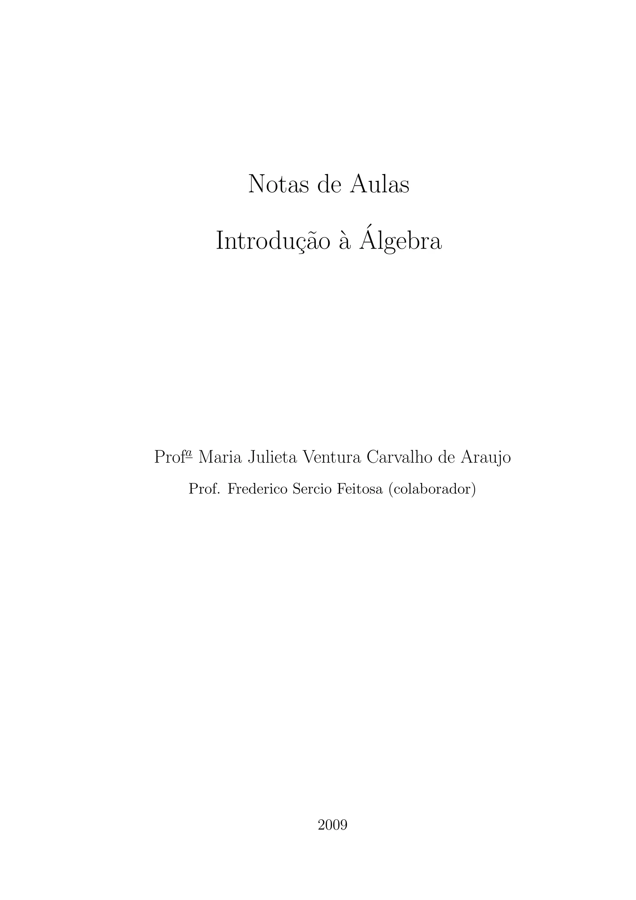 Este documento apresenta um resumo de um curso introdutório de álgebra. Aborda tópicos como princípios de indução matemática, divisibilidade, números primos, equações diofantinas lineares, congruências e sistemas de congruências lineares. Inclui também uma bibliografia com referências sobre os assuntos tratados.