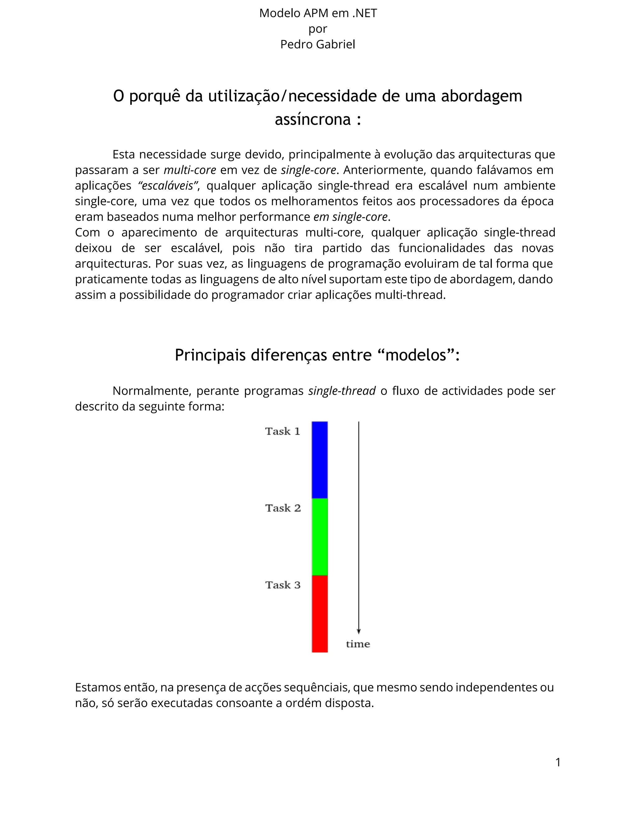 O documento discute a necessidade de uma abordagem assíncrona em aplicações devido à transição de arquiteturas single-core para multi-core, destacando os benefícios de programação multi-thread. Apresenta o Asynchronous Programming Model (APM) em .NET, que permite a execução de ações em diferentes threads e detalha três tipos de rendezvous: wait-until done, polling e callback. O APM proporciona métodos que seguem a convenção beginxxx e endxxx, facilitando a execução de operações assíncronas com suporte a callbacks para gerenciar a conclusão das ações.