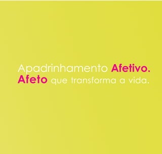 A organização RECRIAR busca promover os direitos de crianças em abrigos à convivência familiar através de projetos como o Apadrinhamento Afetivo, que permite a criação de laços entre crianças/adolescentes e voluntários dispostos a oferecer apoio afetivo e participação familiar fora do ambiente institucional, sob acompanhamento de uma equipe técnica.