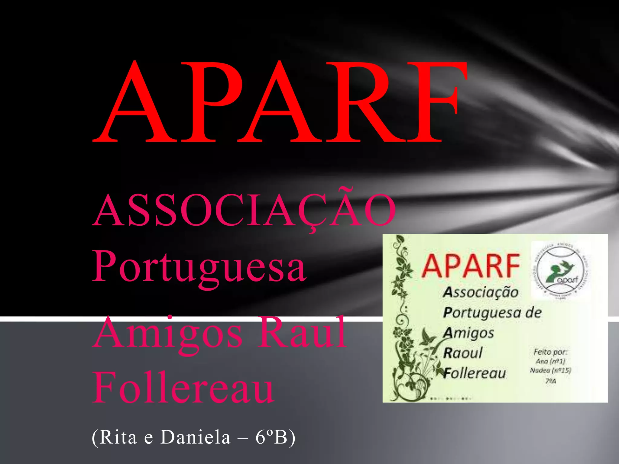 A APARF é uma associação portuguesa sem fins lucrativos dedicada a ajudar pessoas com hanseníase (lepra) através de atividades de solidariedade. Celebra o Dia Mundial dos Leprosos no último domingo de janeiro para arrecadar fundos e conscientizar o público sobre a situação dos pacientes com hanseníase em Portugal e no mundo.