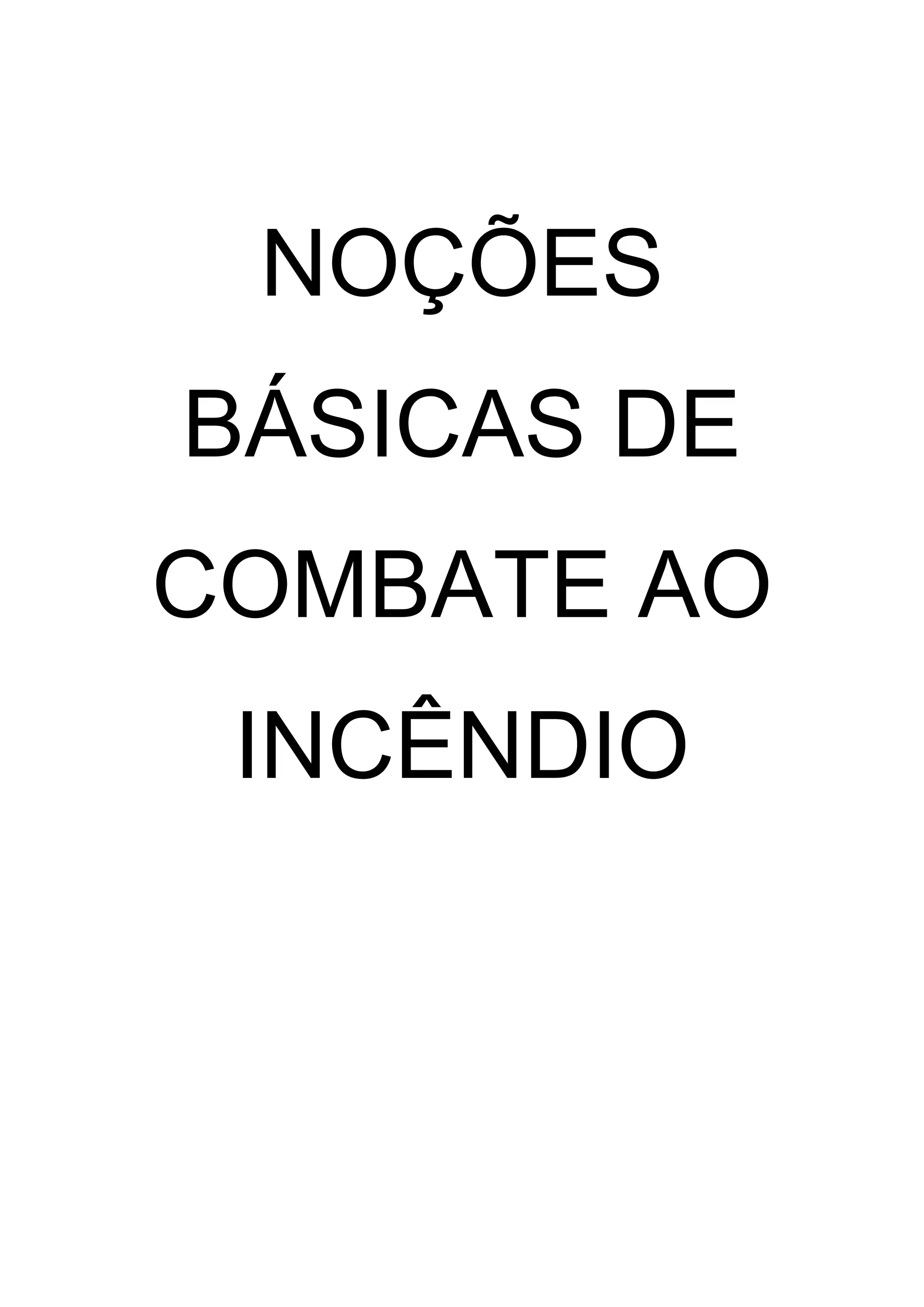 O documento fornece noções básicas sobre combate a incêndio, definindo termos como fogo, incêndio, sinistro e combustão. Explica que o fogo se torna um incêndio quando sai do controle e passa a destruir tudo ao seu redor, causando danos. Detalha os três estados da matéria que podem servir como combustível - sólido, líquido e gasoso - e as três formas de transferência de calor - condução, convecção e irradiação.