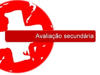 O documento fornece diretrizes sobre primeiros socorros, com foco em avaliação de sinais vitais, exame físico e identificação de lesões que podem comprometer a vida. Detalha procedimentos para quantificar frequência respiratória, cardíaca e pressão arterial, além de realizar exame céfalo-caudal para encontrar possíveis traumas.