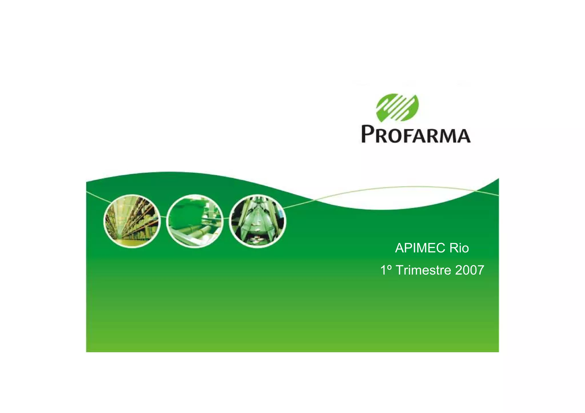 A Profarma atua em 83,5% do mercado farmacêutico brasileiro e teve crescimento de receita bruta de 26,8% no primeiro trimestre de 2007. Apesar do crescimento, o lucro líquido foi negativo devido a variações nos ativos operacionais. A empresa possui oportunidades de expansão em novas regiões e segmentos para continuar crescendo.