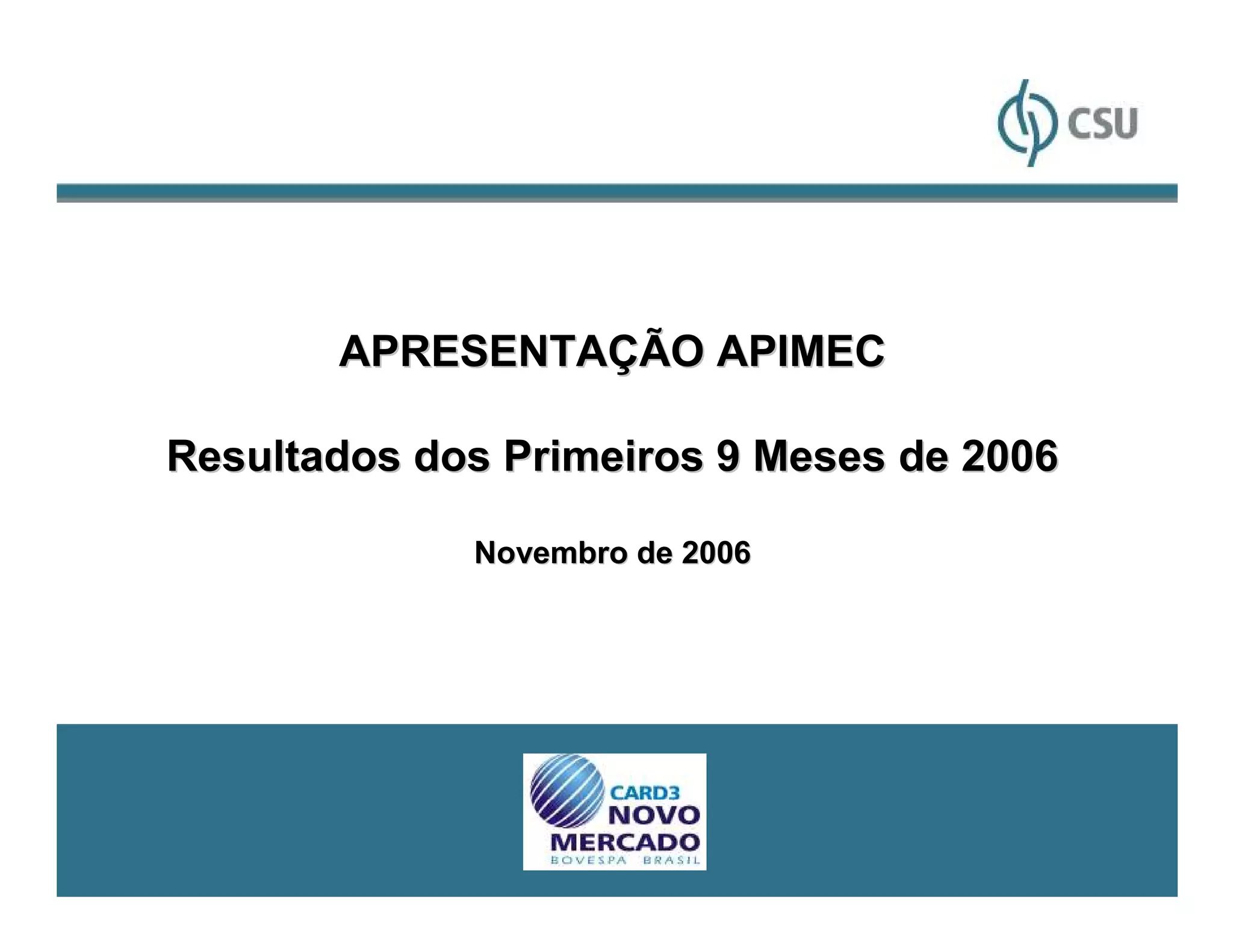 Este documento apresenta os resultados financeiros da CSU CardSystem nos primeiros 9 meses de 2006. Resume: