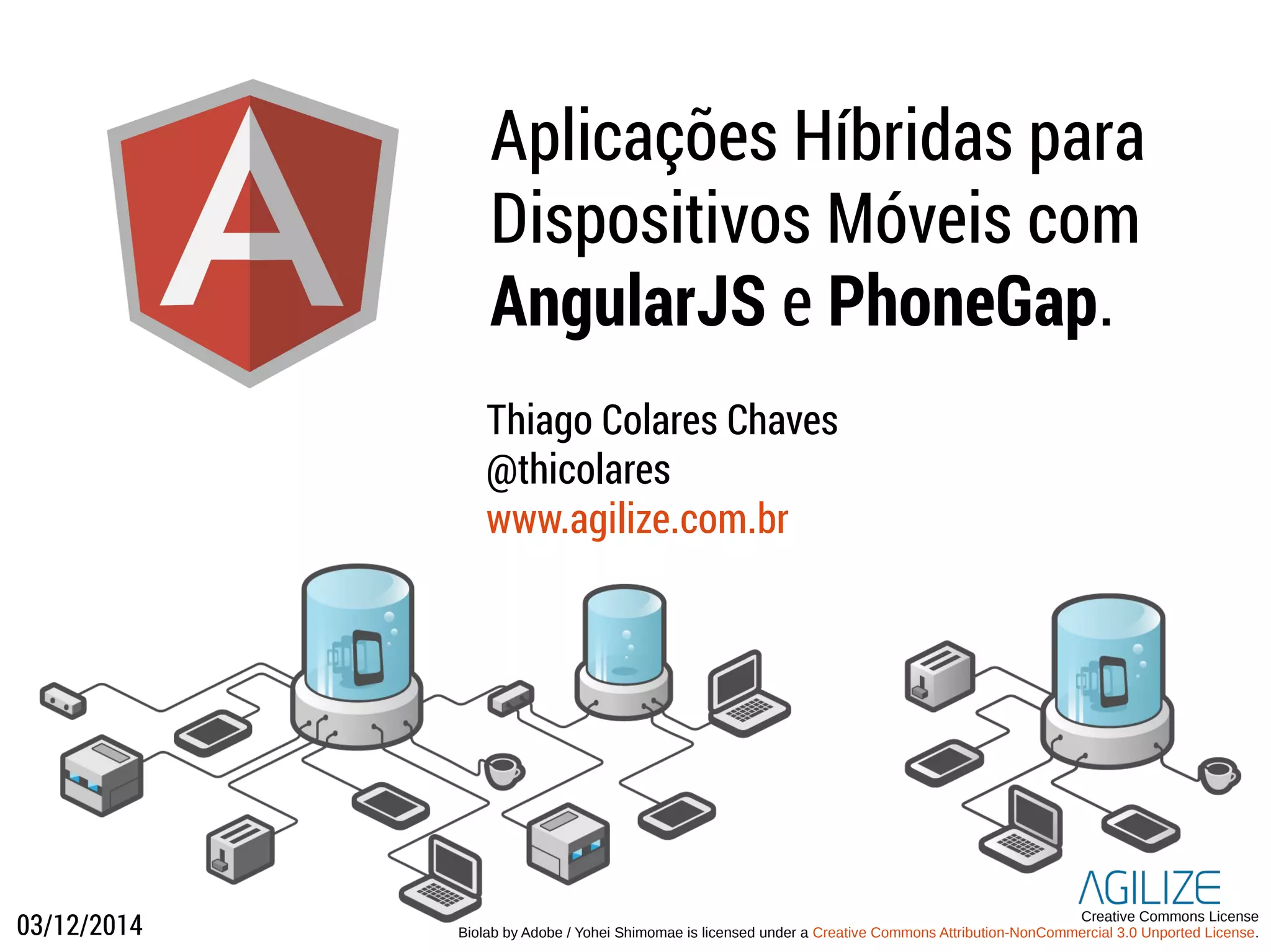 O documento discute o desenvolvimento de aplicações híbridas para dispositivos móveis utilizando AngularJS e PhoneGap, destacando suas vantagens e desvantagens em comparação com aplicativos nativos e web. AngularJS é apresentado como um framework JavaScript que melhora a criação de aplicações de página única, enquanto o PhoneGap permite empacotar HTML, CSS e JavaScript em aplicativos nativos. O texto também menciona a importância de manter uma boa experiência do usuário ao desenvolver essas aplicações.