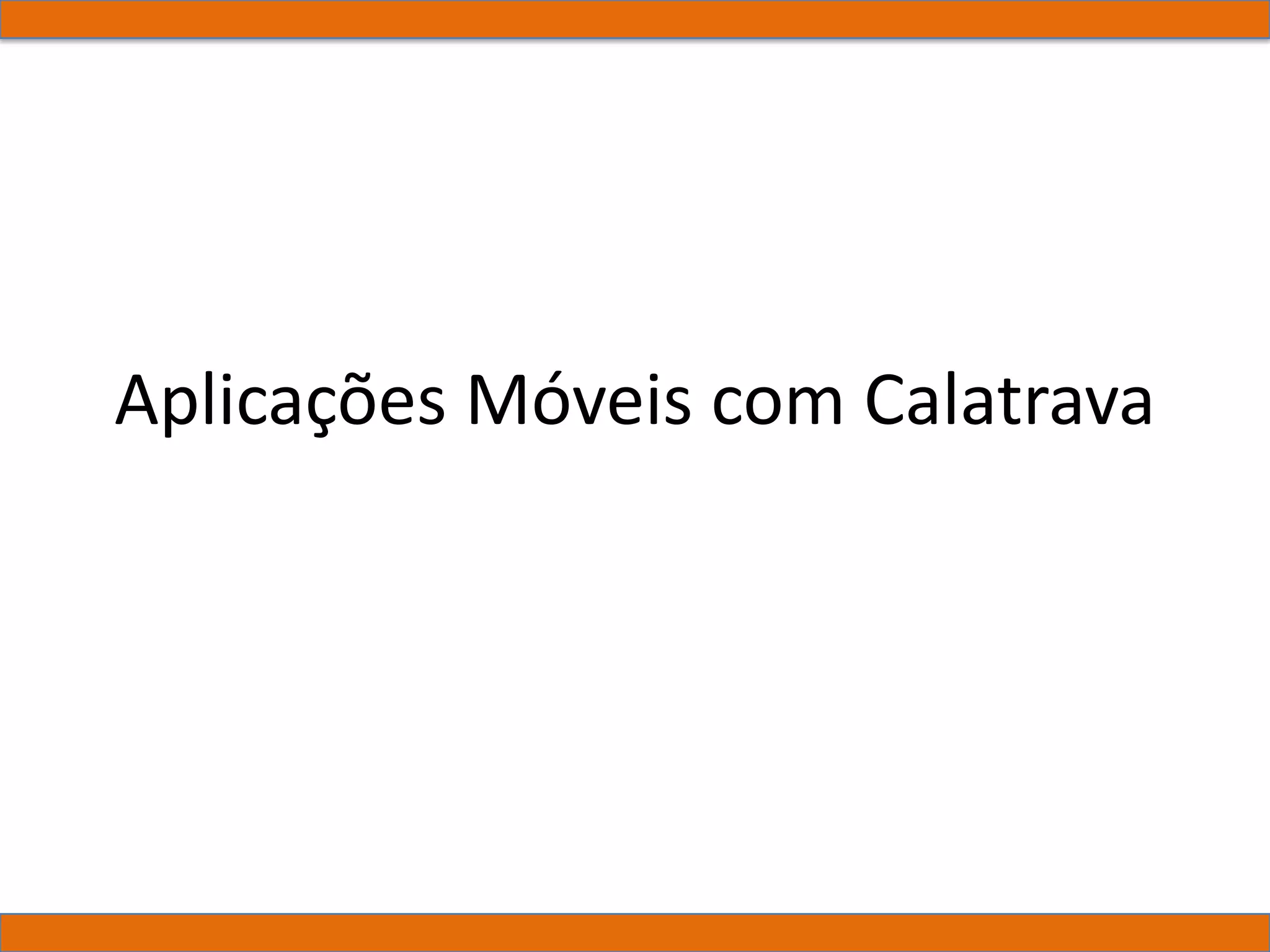 O documento discute abordagens para aplicações móveis multiplataforma, incluindo nativas para cada plataforma, utilizando um toolkit cross-platform ou abordagem híbrida. É apresentada a arquitetura do framework Calatrava, que separa UI e lógica, permitindo compartilhar código entre plataformas e evoluir a interface de forma iterativa de acordo com cada plataforma.