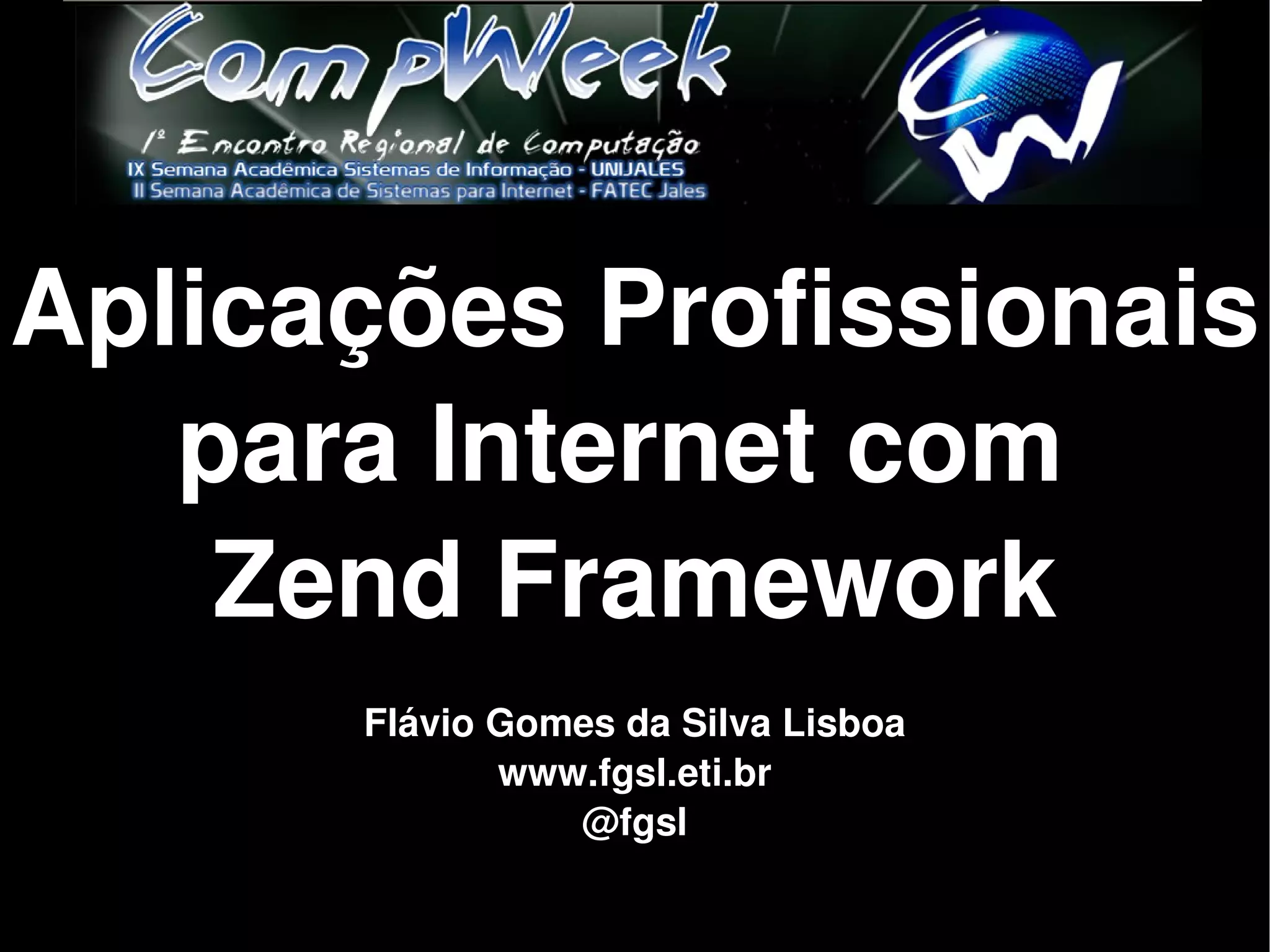 1) Apresenta o Zend Framework como uma solução para problemas comuns na construção de aplicações profissionais para a internet, como manutenção e mudanças;