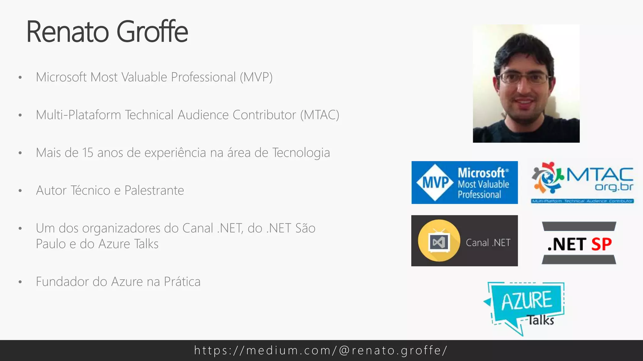 O documento apresenta as experiências e contribuições de Renato Groffe na área de tecnologia, destacando sua atuação em escalabilidade de aplicações web usando Microsoft Azure, Kubernetes e outras soluções em nuvem. São abordados conceitos como vertical e horizontal scaling, balanceamento de carga, e utilização de containers para melhorar a performance e disponibilidade das aplicações. Além disso, são discutidos problemas comuns na escalabilidade e estratégias para resolvê-los.