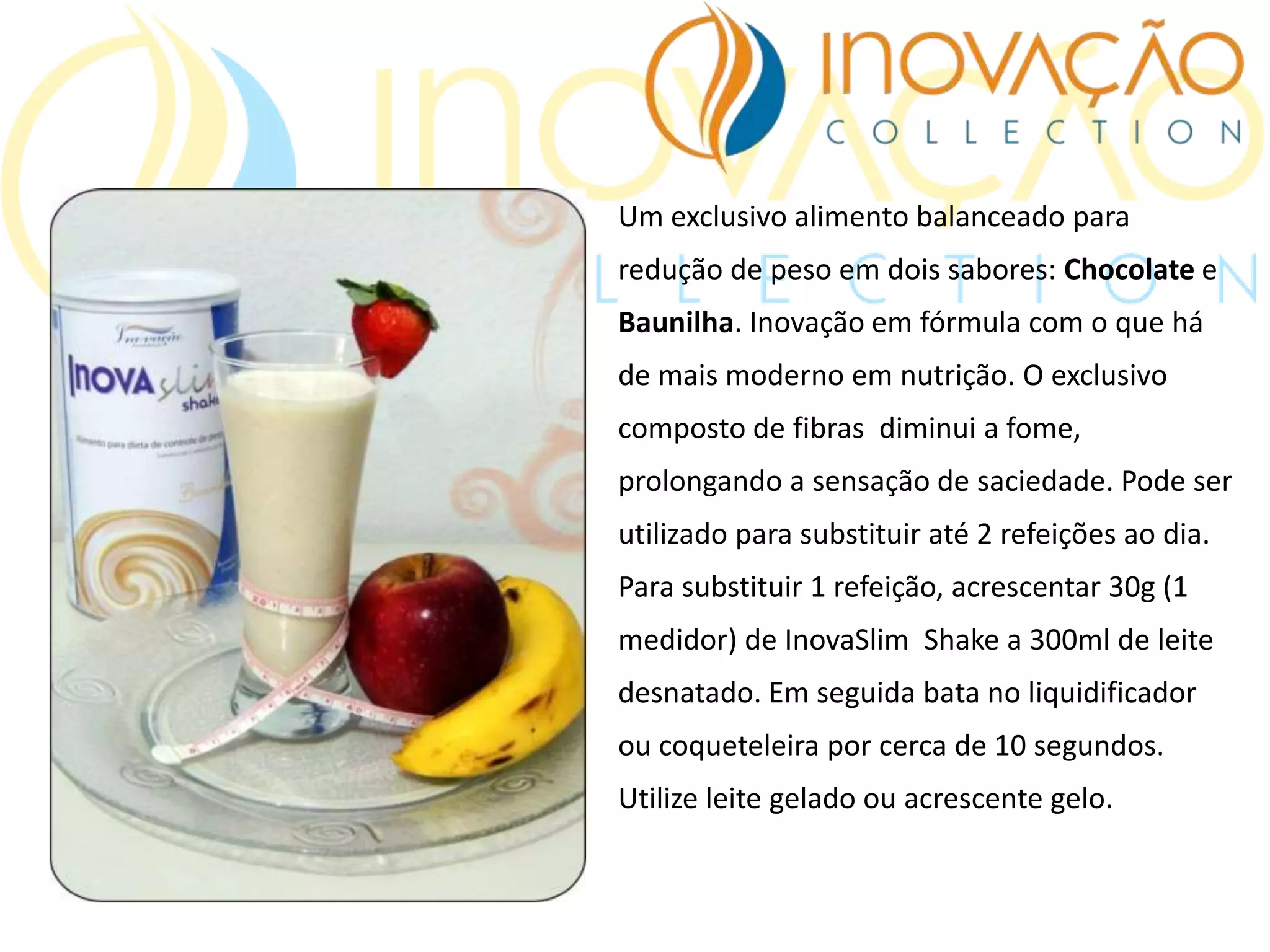 Um alimento balanceado para emagrecimento vem em sabores de chocolate e baunilha e substitui até 2 refeições por dia, misturando 30g do pó com leite desnatado no liquidificador. Sua fórmula inovadora contém fibras que diminuem a fome e prolongam a saciedade, auxiliando na perda de peso de forma saudável.