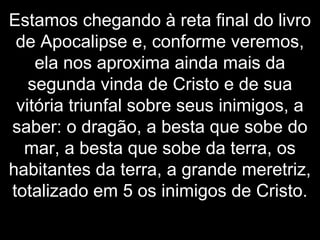 O capítulo 17 do Apocalipse explora a grande meretriz e sua relação com a besta, destacando a sua influência mundial, riqueza, sedução e violência. A descrição contrasta a meretriz com a noiva do cordeiro, e culmina na vitória triunfante de Cristo e da igreja sobre seus inimigos, conforme revelado nos capítulos subsequentes. A mensagem central enfatiza que, apesar da opressão e sedução do mundo, aqueles cujos nomes estão no livro da vida vencerão ao lado do Cordeiro.