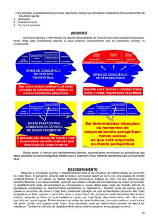 O documento discute o desdobramento anímico ou múltiplo, que é uma técnica de tratamento espiritual que envolve a separação dos corpos espirituais da pessoa (perispírito, corpo mental, etc.) do corpo físico. Isso permite acessar memórias e traumas gravados nesses corpos sutis de vidas passadas para realizar tratamento. O documento também explica as leis que regem a apometria, como é chamada atualmente essa técnica.