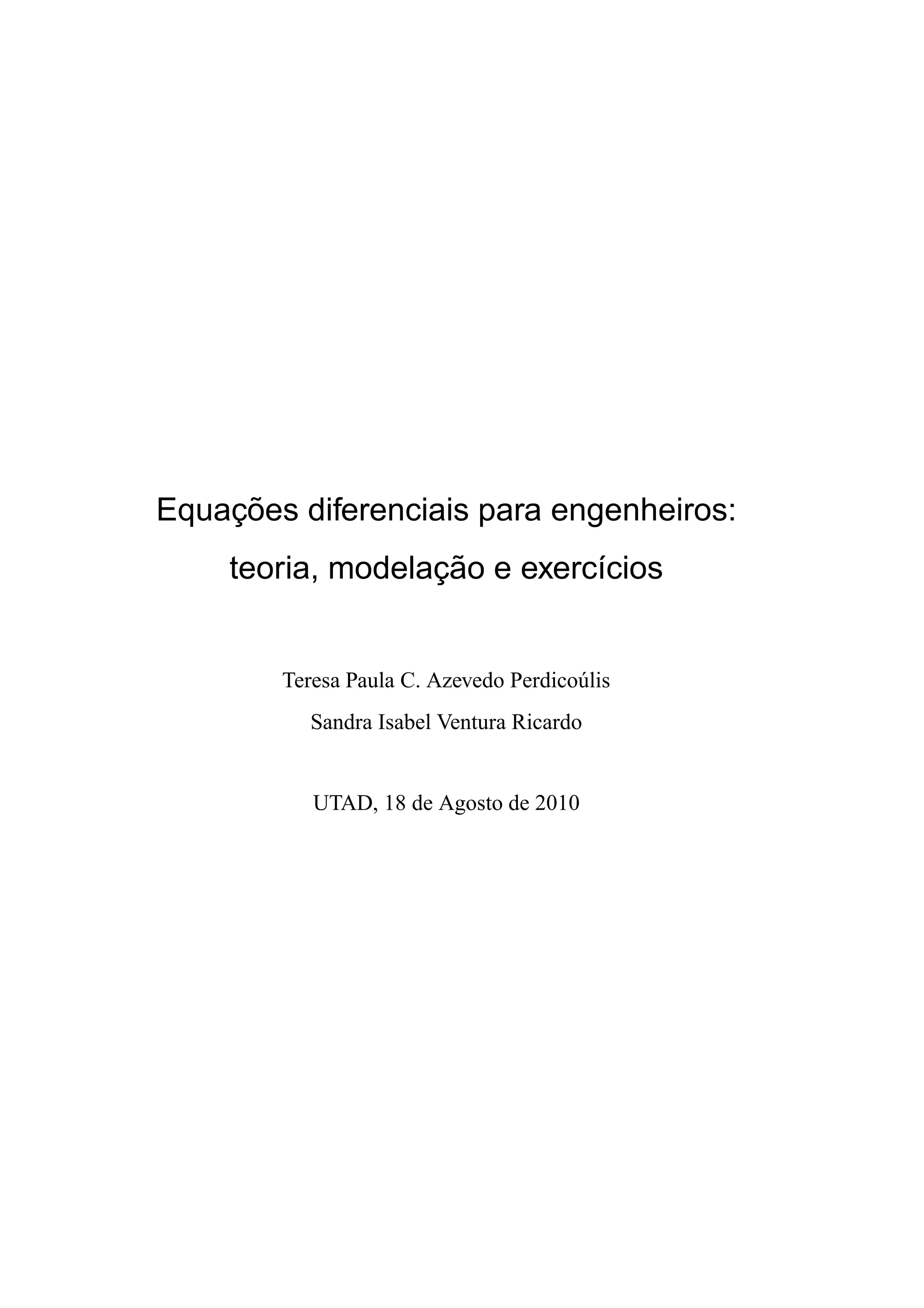 3. Inclui ainda capítulos sobre equações diferenciais de ordem superior, sistemas de equações diferenciais lineares e o uso da transformada de Laplace para resolver problemas envolvendo equações diferenciais.