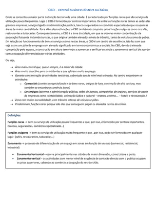 O documento discute as características e funções das áreas centrais e periféricas das cidades.