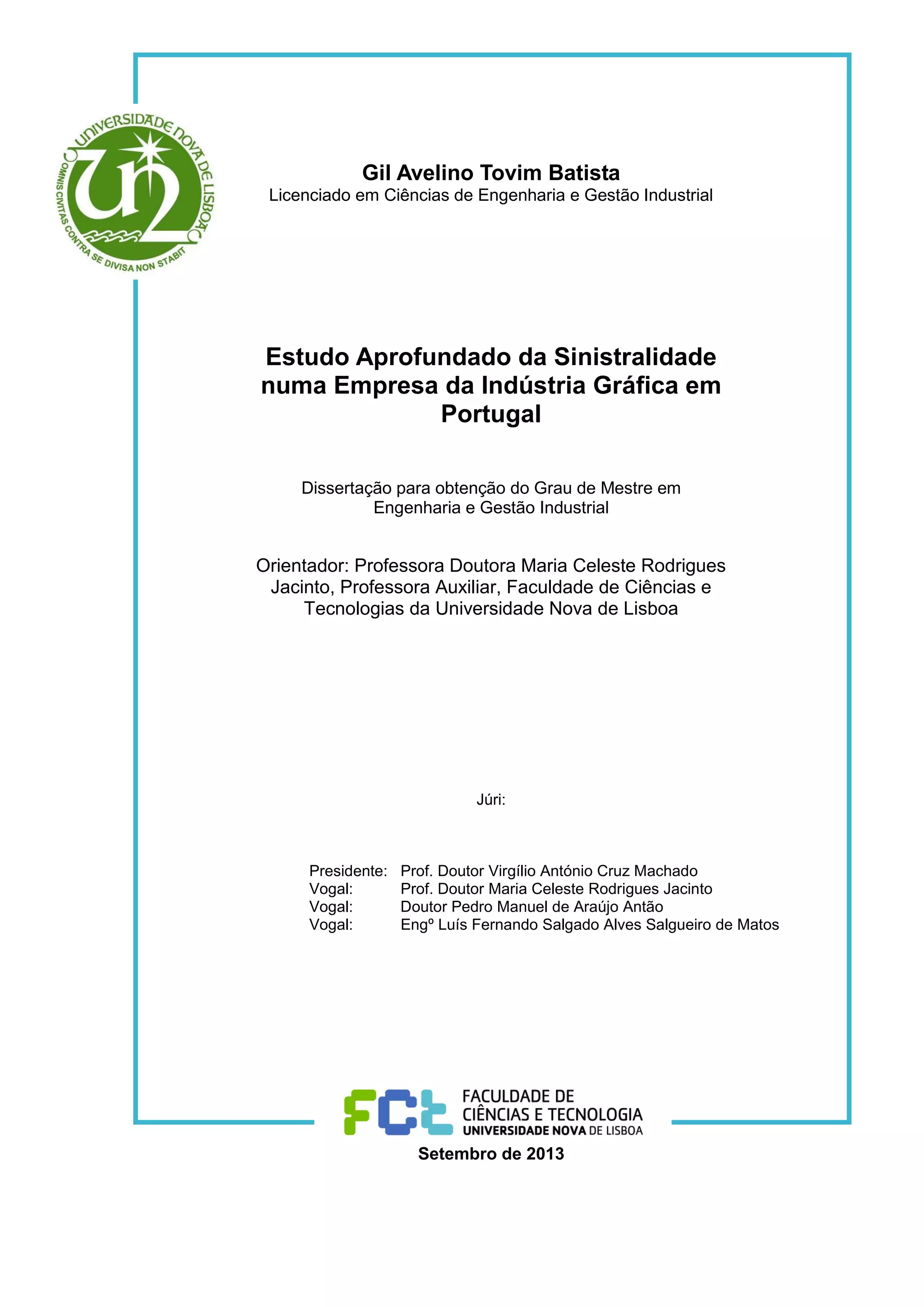 Este documento é uma dissertação de mestrado sobre o estudo aprofundado da sinistralidade numa empresa da indústria gráfica em Portugal. A dissertação aplica a metodologia RIAAT (Registo, Investigação e Análise de Acidentes de Trabalho) para analisar 29 acidentes não-mortais na empresa. O objetivo é identificar as causas dos acidentes e sugerir medidas preventivas. Desenvolve também ferramentas para facilitar a implementação futura do RIAAT na empresa.