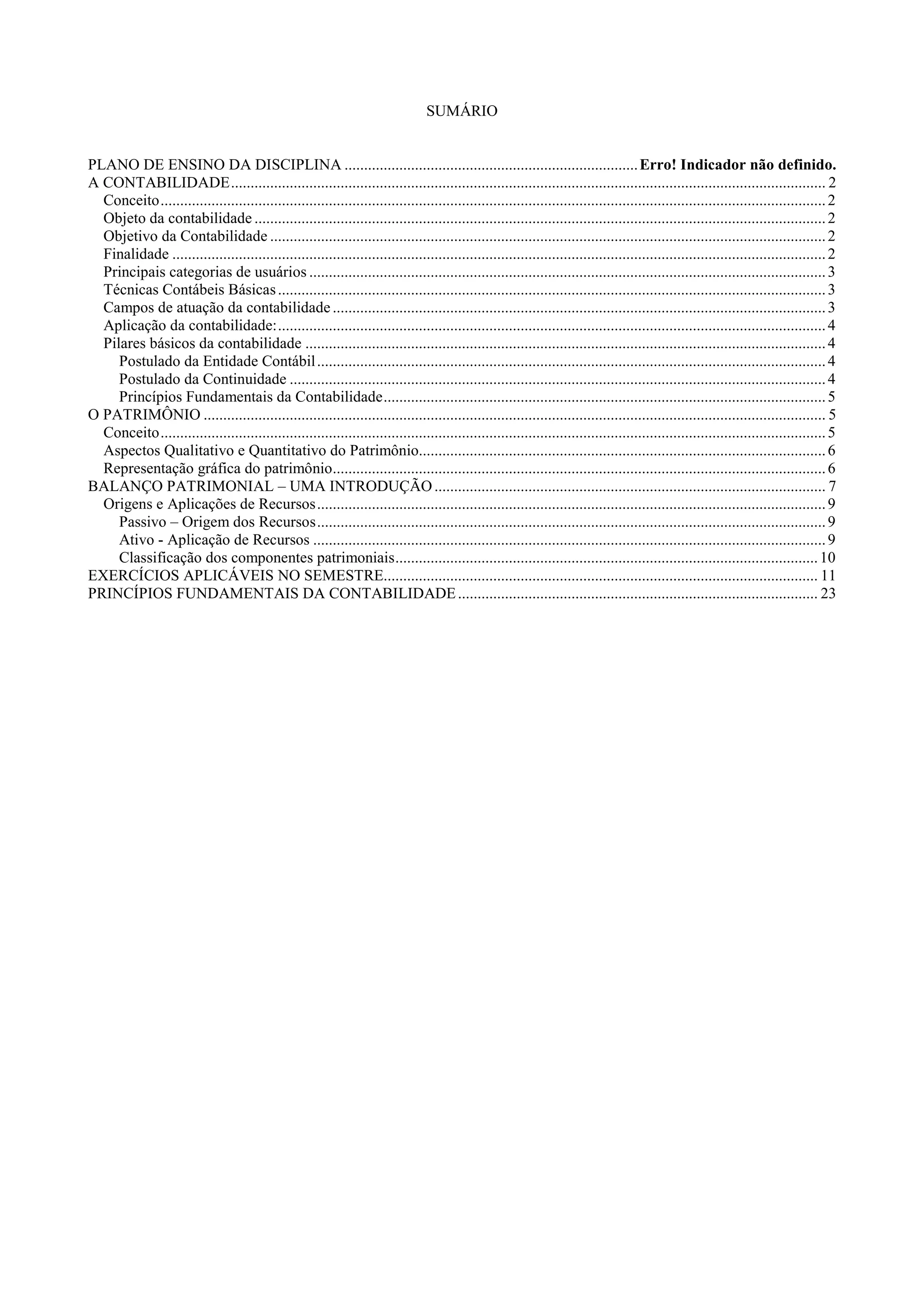 1) O documento discute conceitos fundamentais da contabilidade, incluindo o conceito de patrimônio, ativo, passivo e patrimônio líquido.