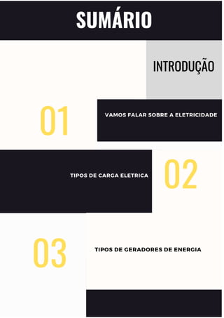 O documento resume conceitos fundamentais sobre eletricidade, incluindo: