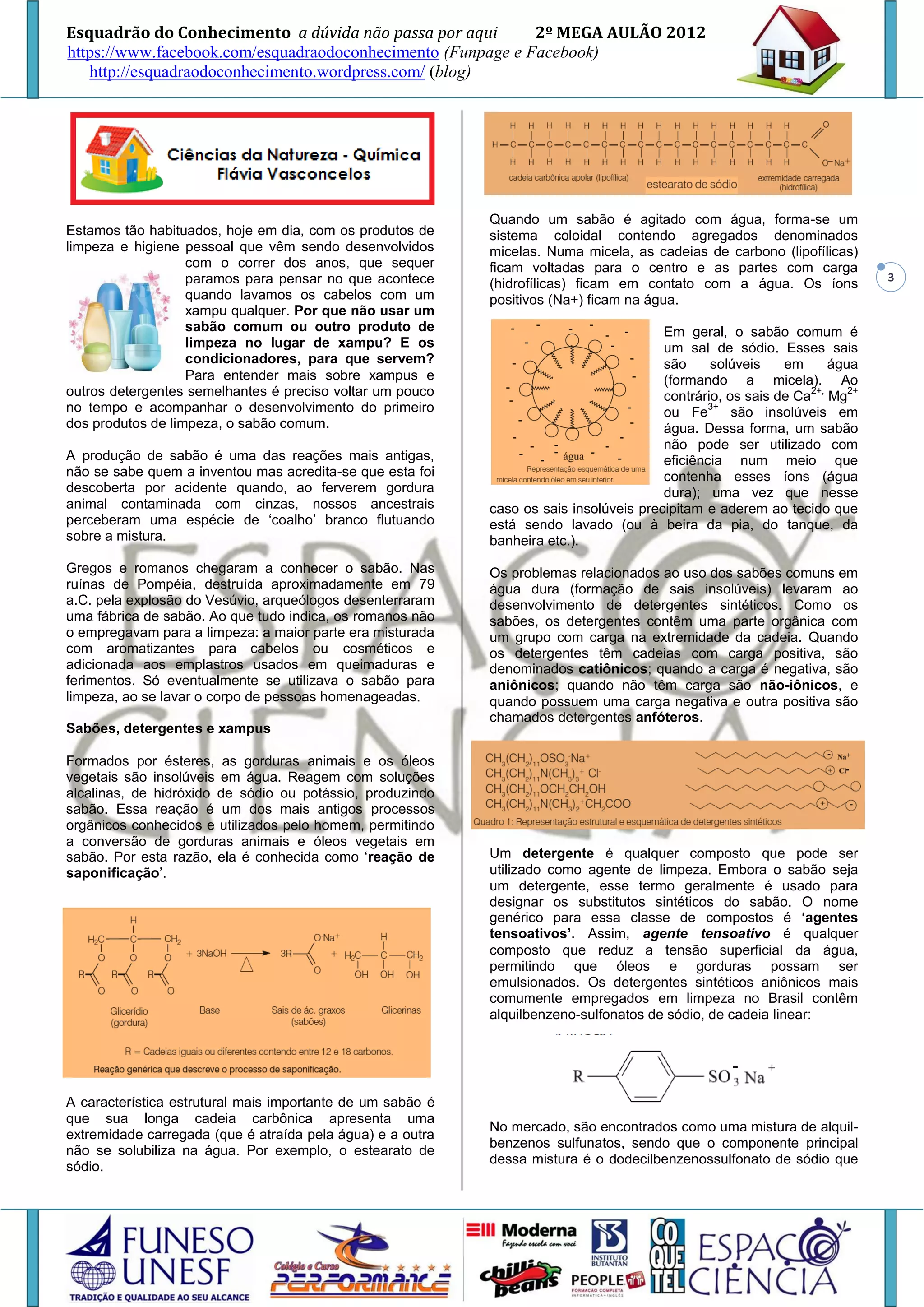 1) O documento explica como sabões e detergentes funcionam para remover sujeira, incluindo a formação de micelas e como mantêm o pH do cabelo.