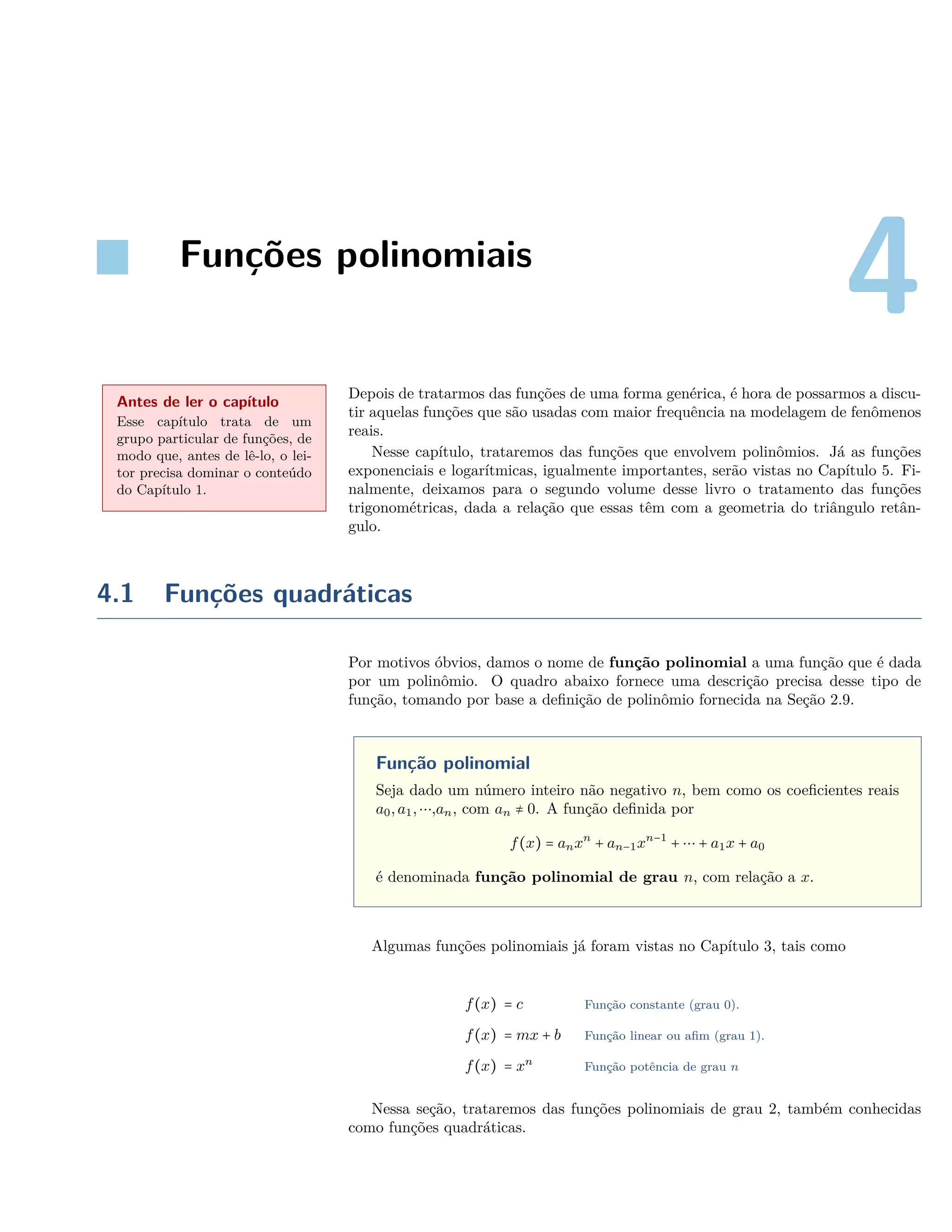 O documento descreve funções polinomiais, especificamente funções quadráticas. Apresenta a forma geral de funções quadráticas e explica como obter seus gráficos, vértices e interceptos. Também mostra como converter entre a forma padrão de funções quadráticas e sua forma canônica.