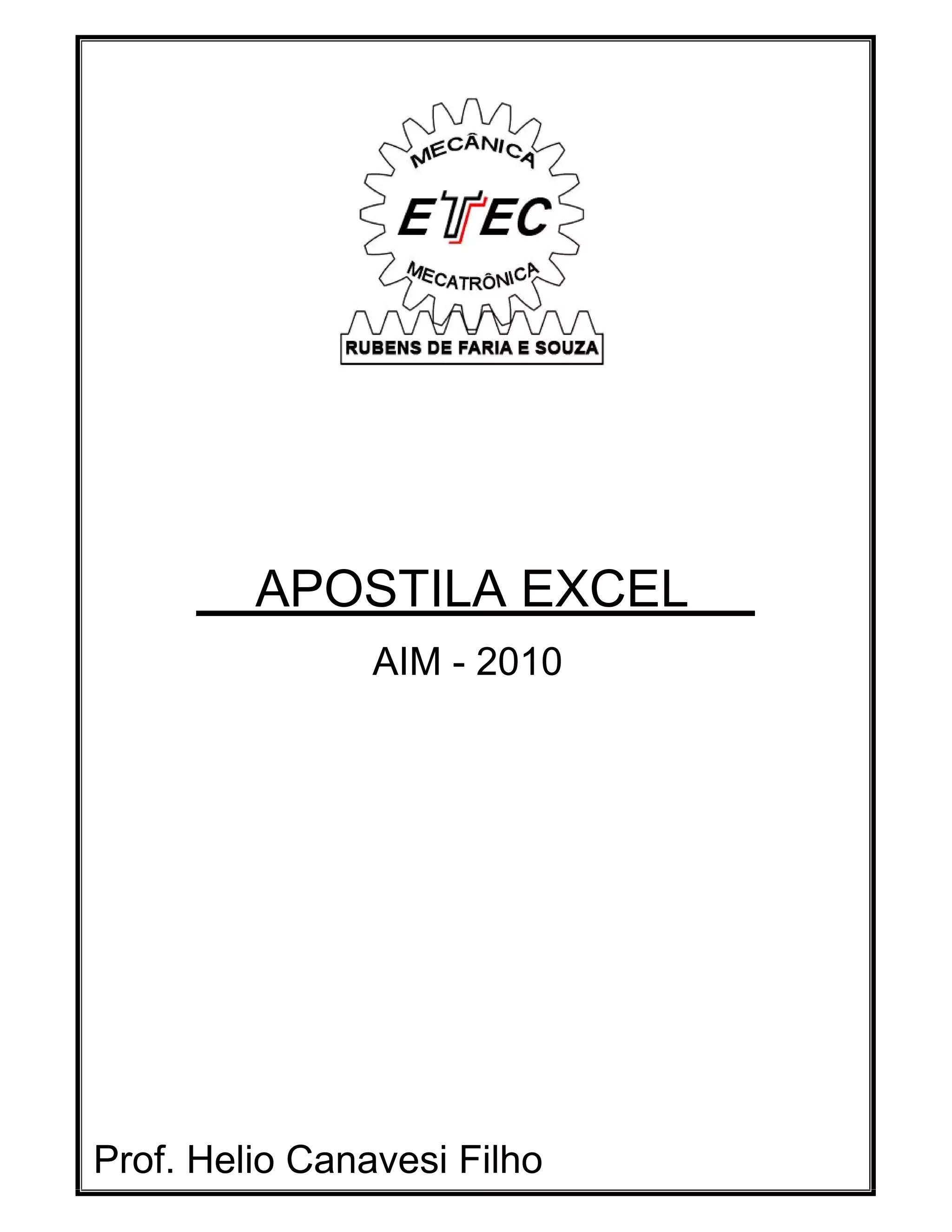 Este documento apresenta um resumo de um curso sobre Microsoft Excel. Ele contém 19 capítulos que abordam tópicos como iniciar o Excel, células, linhas e colunas, pastas de trabalho, inserção de dados e fórmulas.