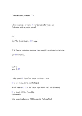 1. Empregamos o pronome it quando nos referimos a um