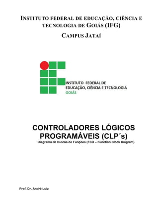 [1] O documento descreve os diagramas de blocos de funções (FBD), uma linguagem gráfica de programação para controladores lógicos programáveis. [2] Os blocos lógicos correspondem a uma linguagem intermediária que inclui funções de temporização pré-definidas, facilitando a criação de programas. [3] O documento também explica portas lógicas como AND, OR, NAND e NOR usando circuitos elétricos e tabelas-verdade.