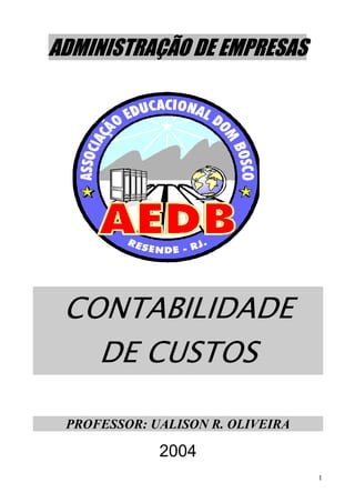 O documento discute a disciplina de Contabilidade de Custos em uma faculdade. Apresenta os objetivos do curso, o conteúdo programático organizado em unidades didáticas, referências bibliográficas recomendadas e a metodologia de ensino que inclui aulas expositivas e trabalhos individuais e em grupo. Também descreve os critérios de avaliação dos alunos e as regras sobre justificativa de faltas.