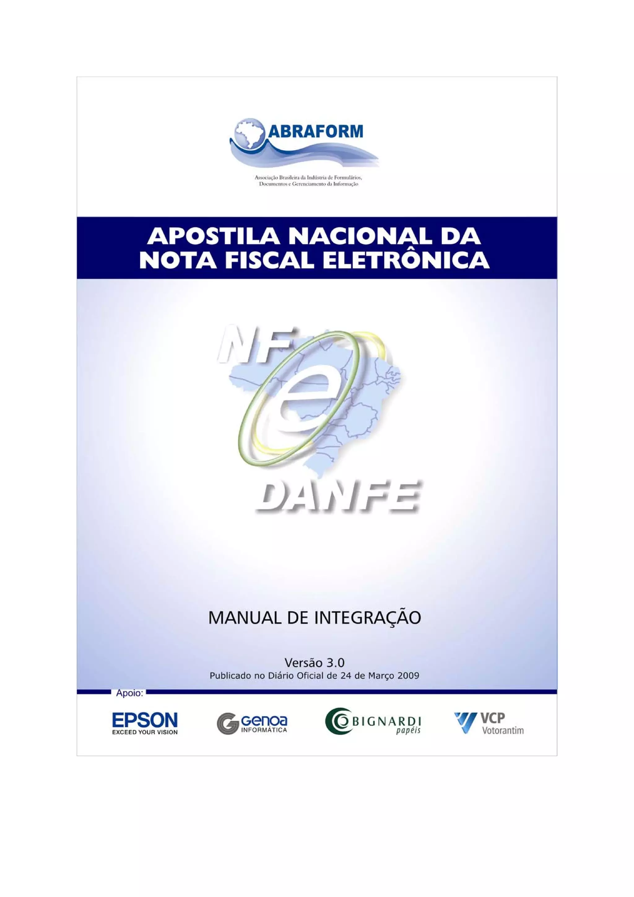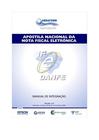 O documento discute a Nota Fiscal Eletrônica (NF-e) e o Documento Auxiliar da NF-e (DANFE), incluindo como a NF-e substitui a nota fiscal em papel, como funciona o processo de emissão e validação da NF-e, e os requisitos e opções para o formato do DANFE.