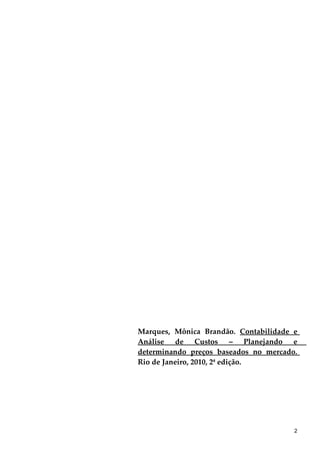 Este documento discute os conceitos de custos relevantes para tomada de decisão, classificação de custos e intervalo relevante na contabilidade de custos e análise financeira. Apresenta as principais terminologias utilizadas e explica como classificar os custos de acordo com sua natureza, variabilidade e relação com o volume de produção. Destaca a importância de se identificar corretamente os custos para fins de tomada de decisão e controle da produção.