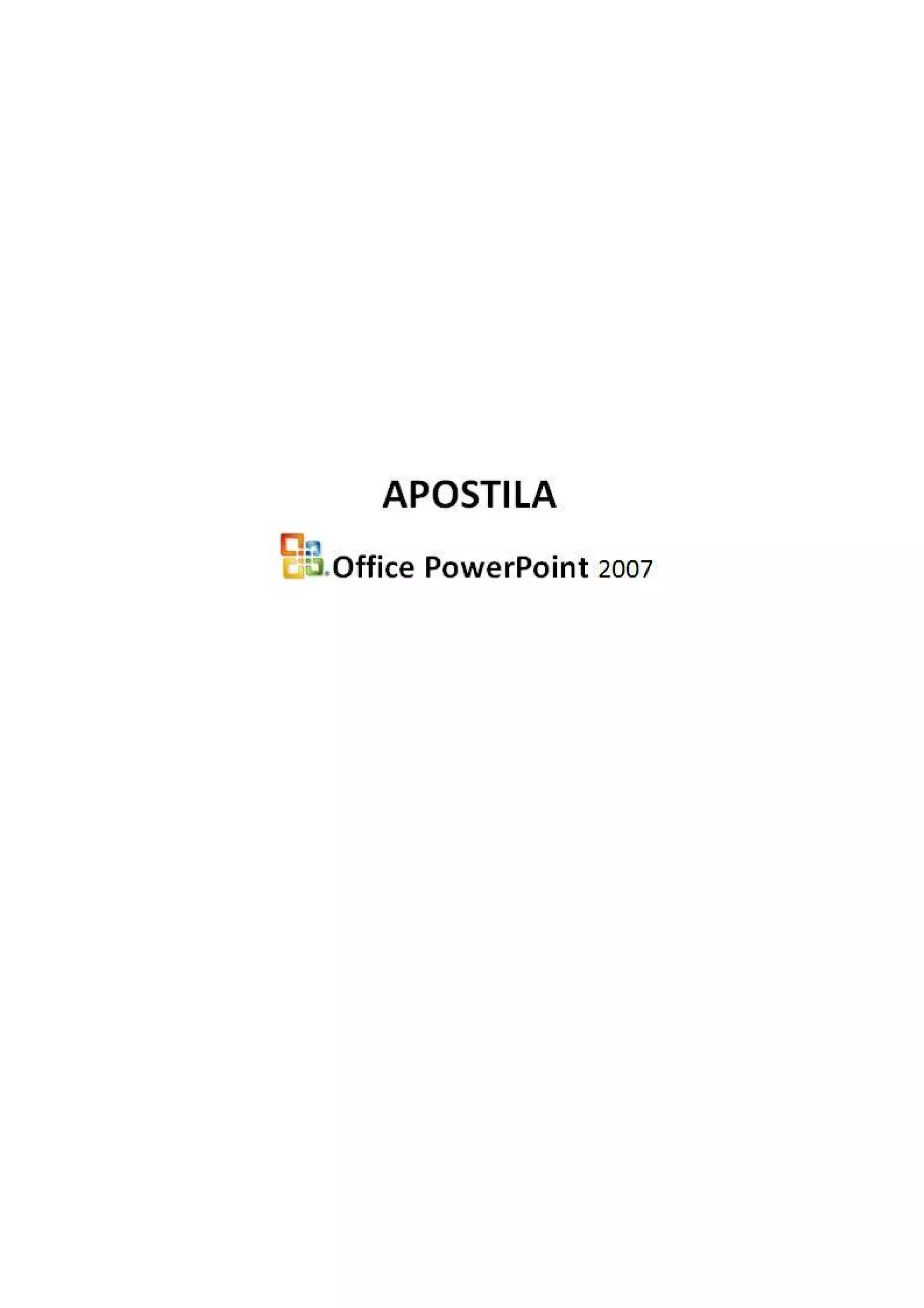1) O documento fornece instruções sobre como usar o Microsoft PowerPoint, incluindo como criar apresentações, formatar texto, inserir figuras, alterar a ordem dos slides e adicionar animações. 2) É explicado como formatar texto usando negrito, itálico e alterar a cor, e como inserir novos elementos como figuras, tabelas, cabeçalhos e rodapés. 3) Também mostra como alterar o plano de fundo dos slides, adicionar transições entre os slides e configurar a apresentação.
