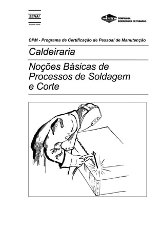 O documento apresenta informações sobre processos de soldagem e corte, incluindo: