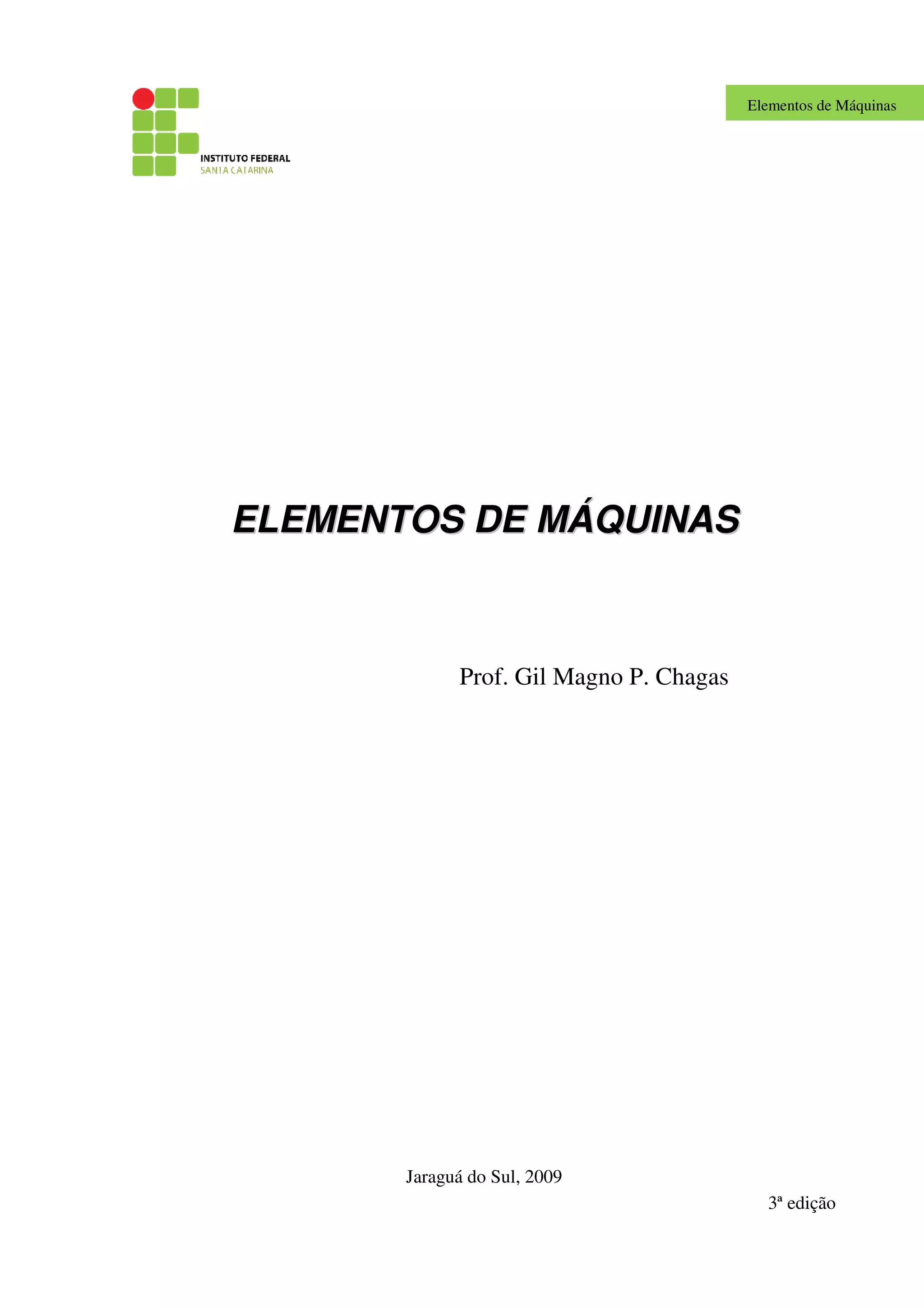 1. O documento descreve os principais elementos de máquinas, incluindo elementos de fixação como parafusos, porcas, pinos e molas, e elementos de transmissão como polias, engrenagens e eixos.