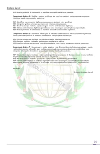O documento fornece um resumo dos principais assuntos cobrados na prova do Exame Nacional do Ensino Médio de Matemática, incluindo: 1) conceitos numéricos como operações em conjuntos numéricos; 2) noções geométricas como figuras planas e espaciais; 3) estatística e probabilidade; 4) álgebra e funções; 5) relações entre geometria e álgebra. O material tem o objetivo de auxiliar alunos na preparação para o exame.