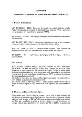 O documento descreve os principais componentes de sistemas elétricos industriais, incluindo:
