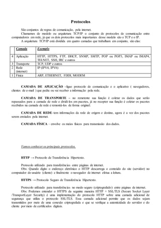 O documento resume os principais conceitos sobre internet, intranet, extranet, protocolos e ferramentas de busca e pesquisa na web. Em três frases: