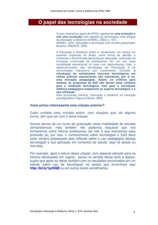 2) Uma definição inicial de educação a distância.
