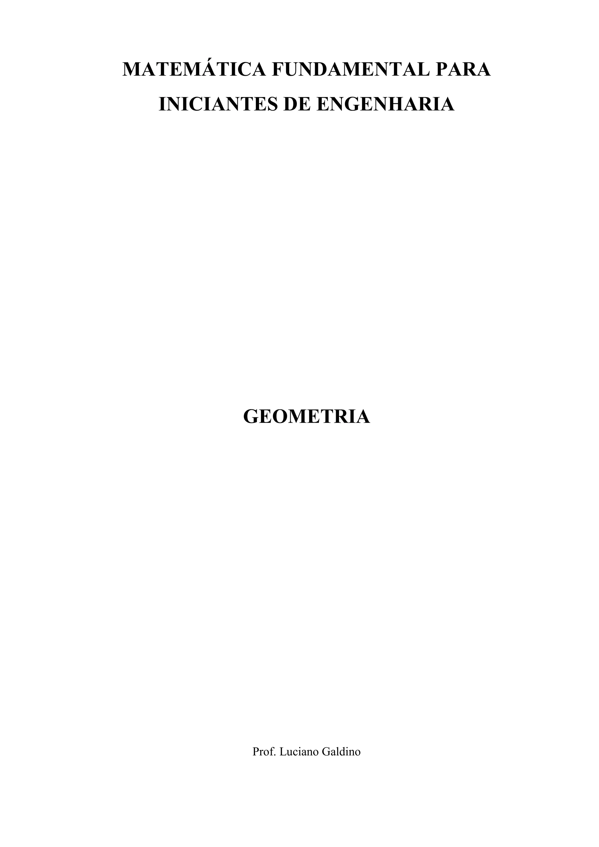 Este documento apresenta os principais conceitos de geometria fundamental para engenharia, incluindo: (1) definições de polígonos, triângulos e suas classificações; (2) o Teorema de Pitágoras e suas aplicações; (3) relações trigonométricas em triângulos retângulos e não retângulos usando seno, cosseno e tangente; (4) leis dos senos e cossenos; e (5) cálculos de área e volume de figuras geométricas comuns. O documento fornece