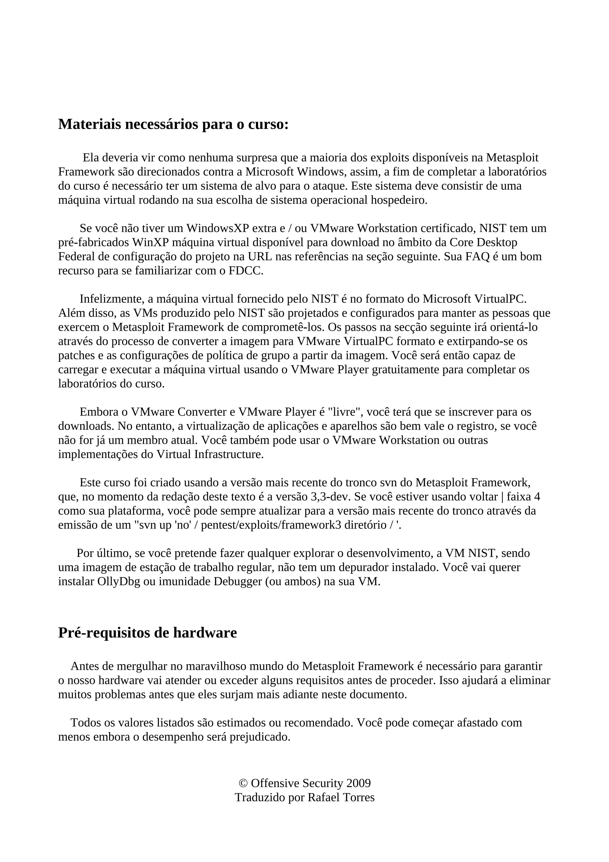2) O curso requer uma máquina virtual com Windows para executar os laboratórios e ensina como converter uma imagem do NIST para esse fim.