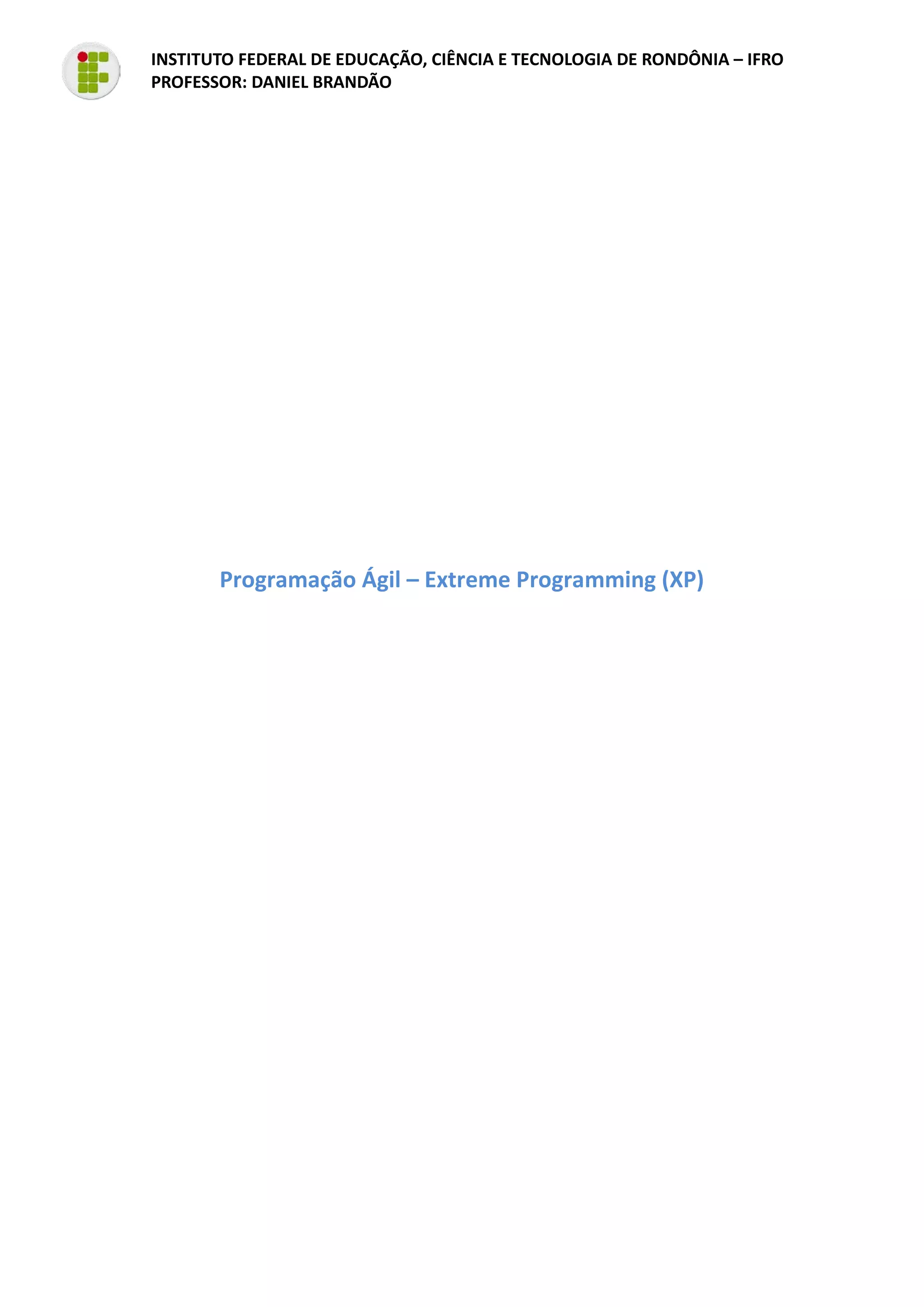 O documento discute a metodologia de programação ágil chamada Extreme Programming (XP). Descreve os princípios básicos do XP, como feedback rápido, simplicidade e aceitação de mudanças. Também explica as práticas do XP, como planejamento semanal com o cliente, liberações de pequenas versões funcionais e programação em pares.