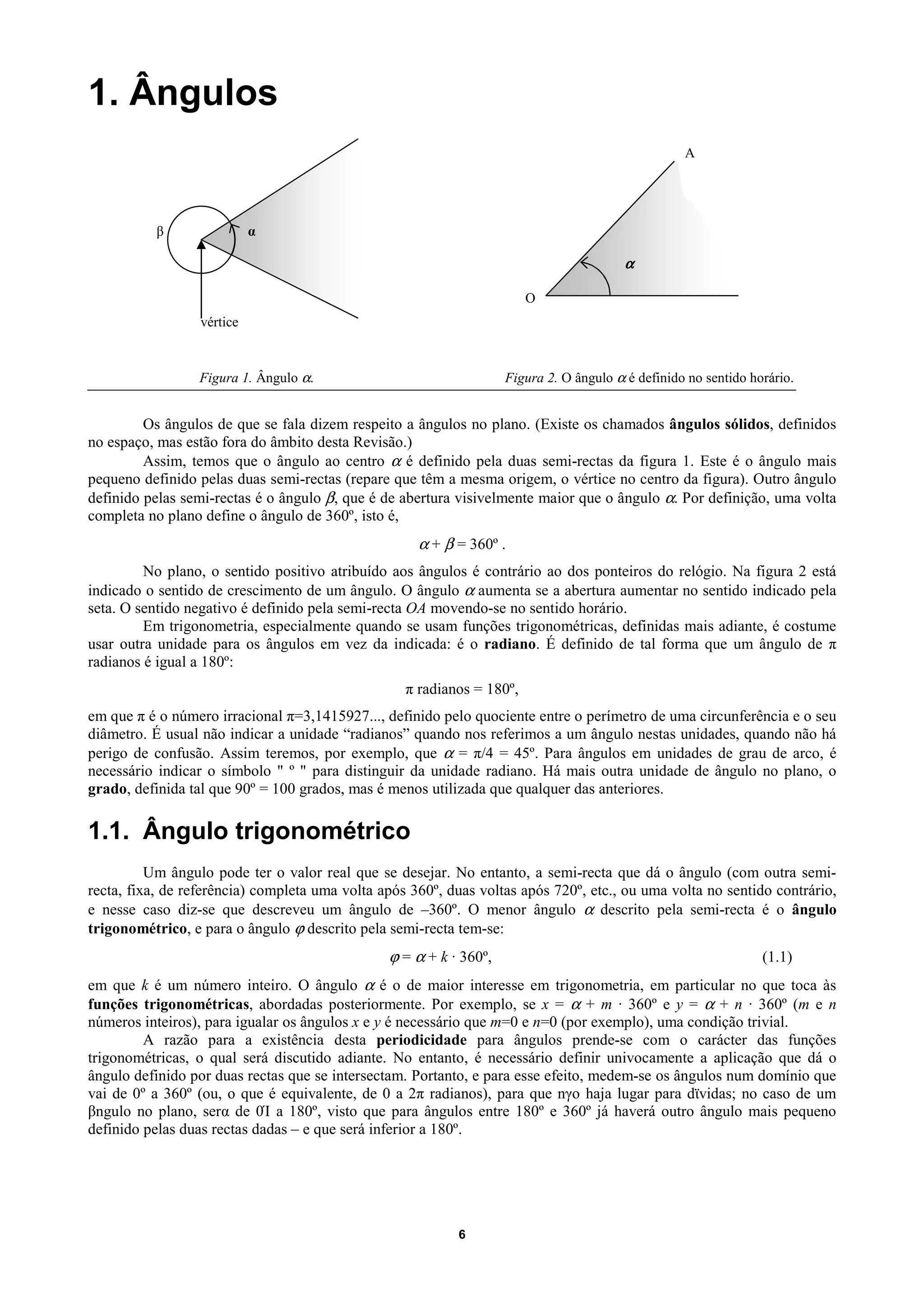 1. O documento discute ângulos e triângulos. Define ângulos, classifica-os de acordo com a abertura e posicionamento relativo a outros ângulos, e introduz conceitos como arcos de circunferência.