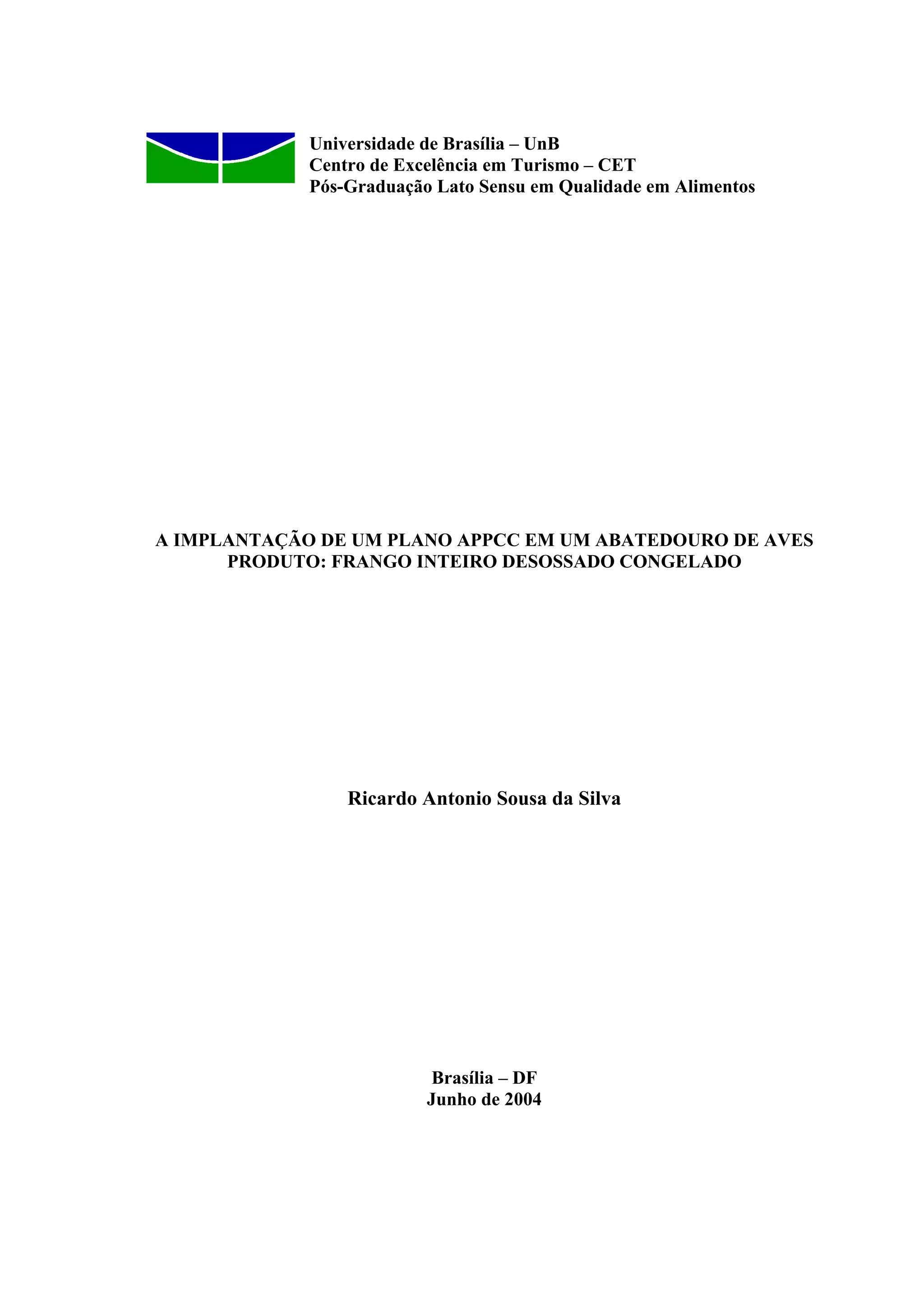 Este documento descreve a implementação de um plano APPCC em um abatedouro de aves para o produto frango inteiro desossado congelado. O plano inclui a identificação da equipe APPCC, a descrição do produto e do fluxograma do processo produtivo, a análise de perigos e a seleção dos pontos críticos de controle, e o estabelecimento de limites críticos e medidas de monitoramento e controle.